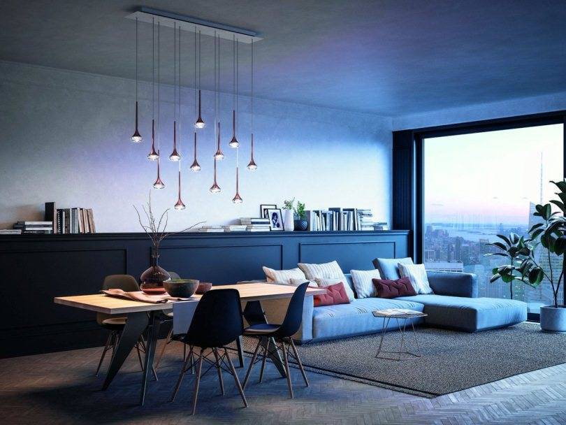 Сочетайте их с подвесными люстрами и напольными торшерами, чтобы получить желаемый результат и создать оригинальный подход в дизайне интерьера.