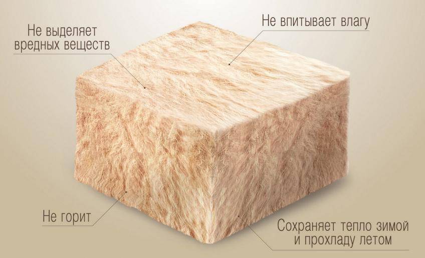 Базальтовая вата характеризуется превосходной паропроницаемостью. Базальт является негорючим материалом, что обеспечивает противопожарную защиту деревянного брусового дома. Материал имеет хорошие шумоизолирующие характеристики;