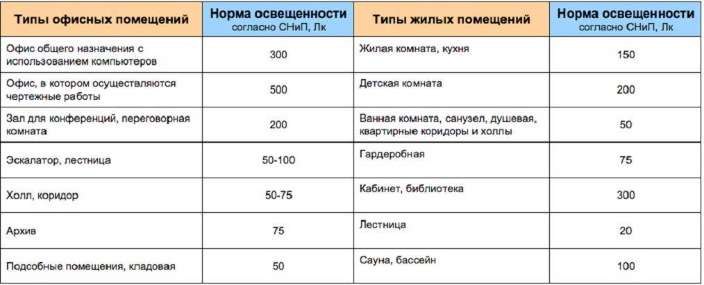 При учете такого параметра, как нормы освещенности, необходимо помнить, что они различны для разных жилых помещений. В СНиП вы найдете нормы по уровню освещенности, как для нежилых, так и жилых комнат.