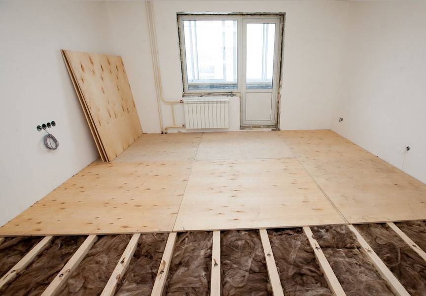 Выравнивание пола фанерой выполняют следующим образом: