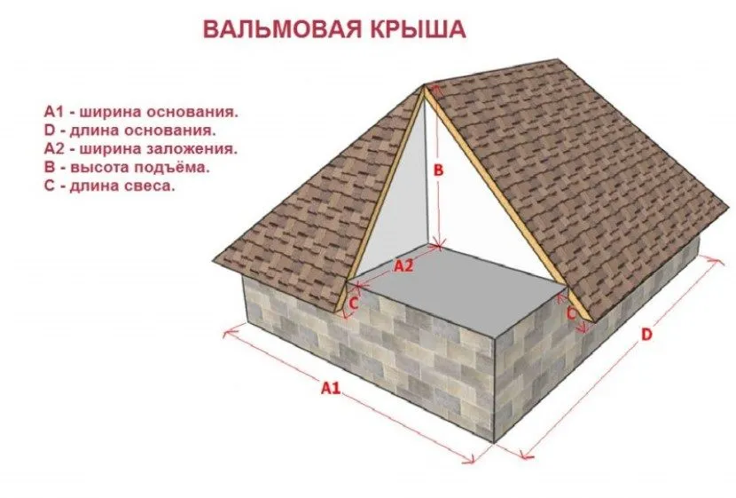 Устройство крыши вальмового вида складывается из следующих составляющих: