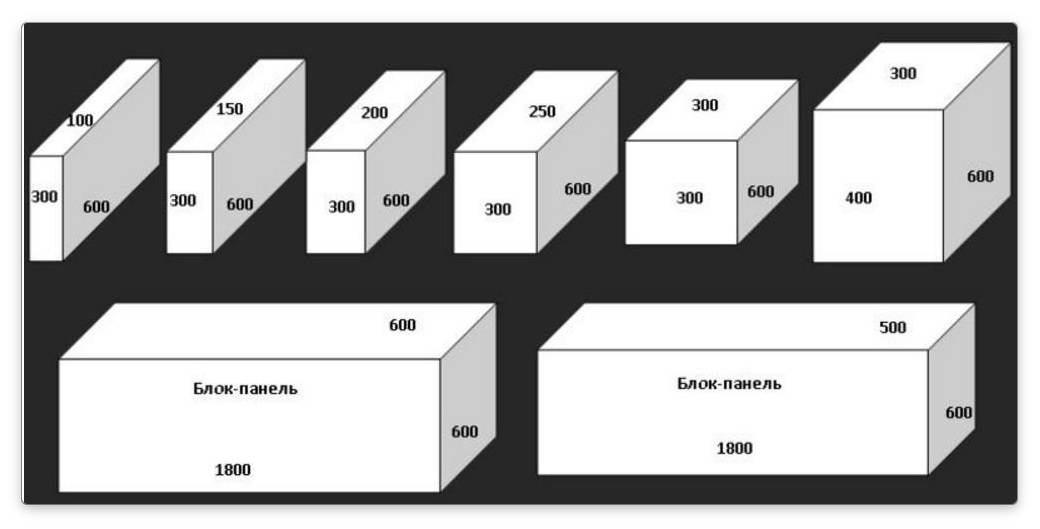 • Толщина газобетонного блока бывает: 200, 250, 300, 350, 400 и 500 мм;