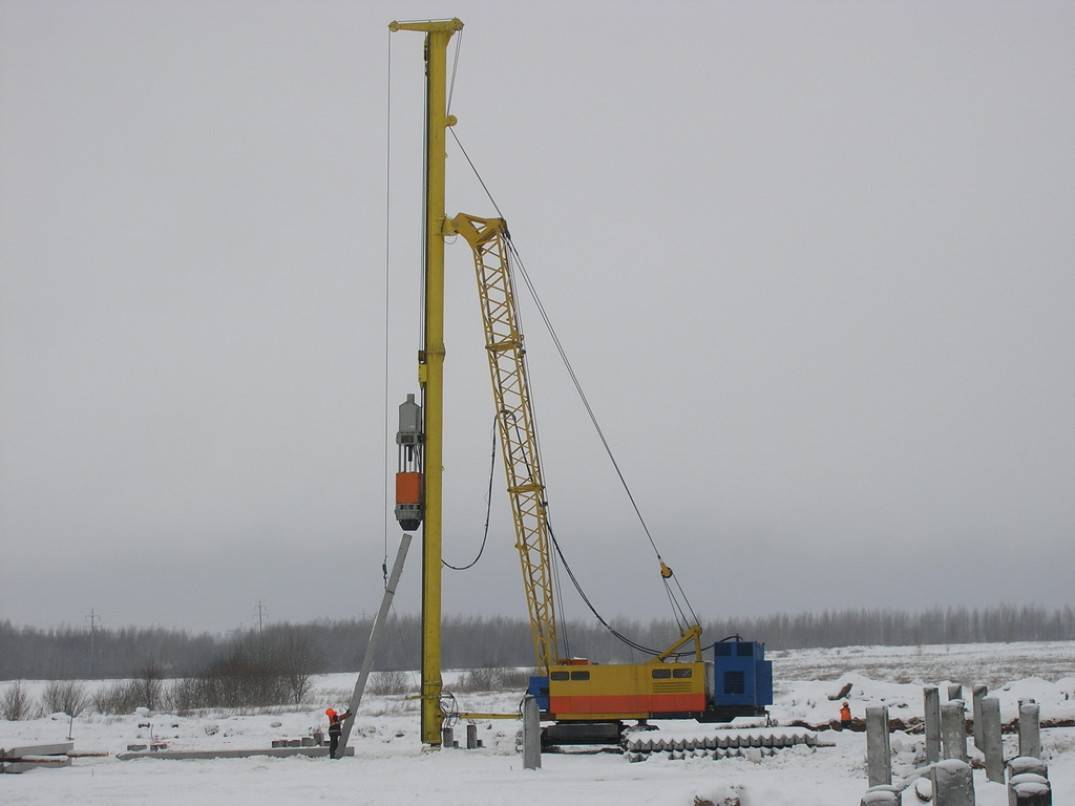 Наша компания использует мощный дизель-молот, установленный на автомобильную копровую установку с поворотной платформой, что позволяет погружать 16 свай, длиной до 12 метров с одного места. Таким образом, наша бригада может за один день погрузить до 30 железобетонных свай, что подтверждает высокую эффективность применяемого нами оборудования.