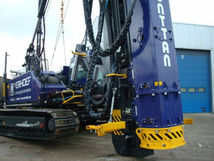 - Гидромолот. Гидравлический привод осуществляет и подъем, и опускание ударной части молота. Это дает возможность регулировать силу удара. Например, при строительстве вблизи уже жилых зданий целесообразно использовать не очень сильные, но частые удары.