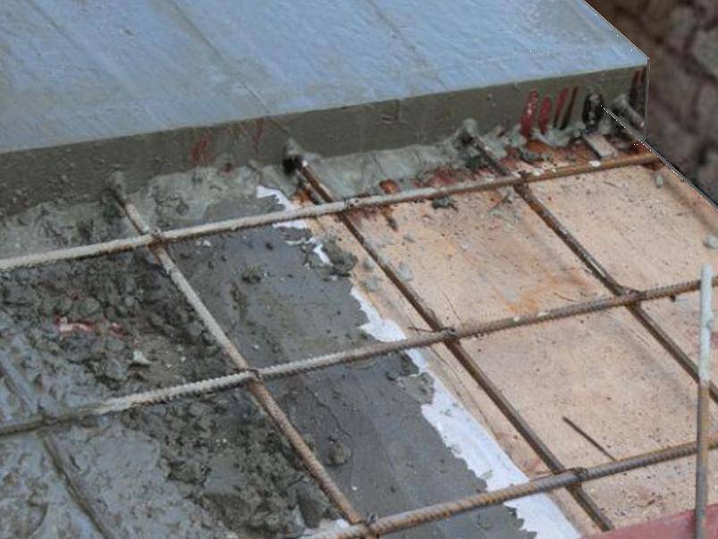 Для изготовления ребер жесткости под тяжелыми перегородками верхний слой утеплителя (5 см) укладывается с разрывом, ширина которого чуть больше толщины стены. В эту полость укладывается заранее связанный проволочными скрутками каркас, выполненный по технологии: