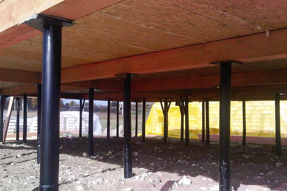 - На лесовидных почвах, теряющих прочность при насыщении водой. Во всех указанных случаях нагрузку от дома необходимо передать на плотные слои грунта. Ленточные фундаменты или утепленная шведская плита при такой глубине становятся экономически невыгодными, да и попросту, такие фундаменты могут оказаться непрочными.