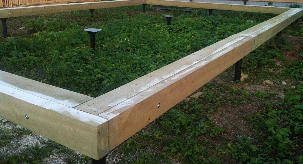 Фото 14. Свайный фундамент с обвязкой из деревянных балок