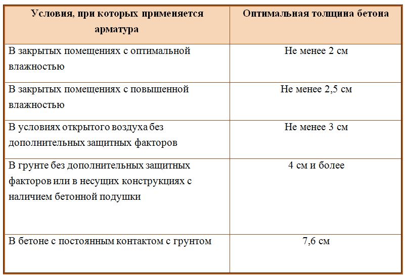 Для определения оптимального слоя для защиты арматуры следует принимать во внимание: